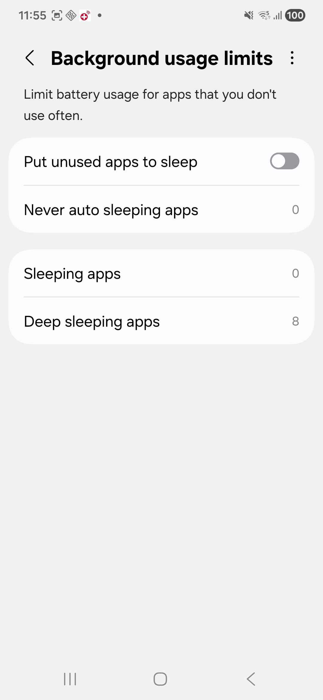 - See the Don’t Kill My App site and suggestions, e.g. for Samsung phones.